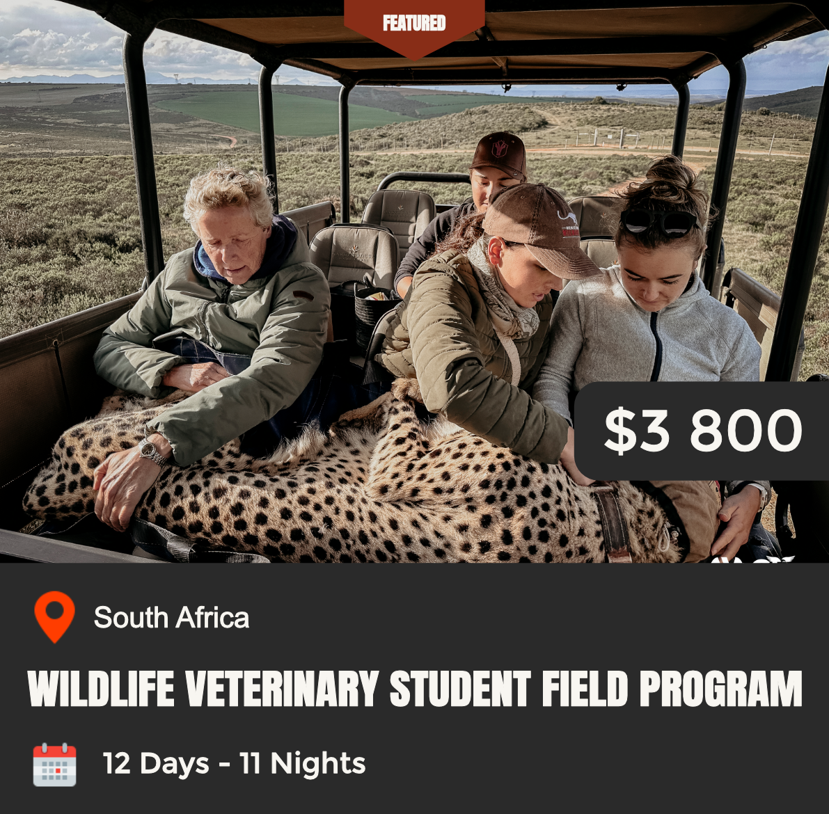 Yes, you’ll enjoy beautiful landscapes, but your primary purpose is to learn, observe, and engage in real fieldwork alongside a wildlife vet.